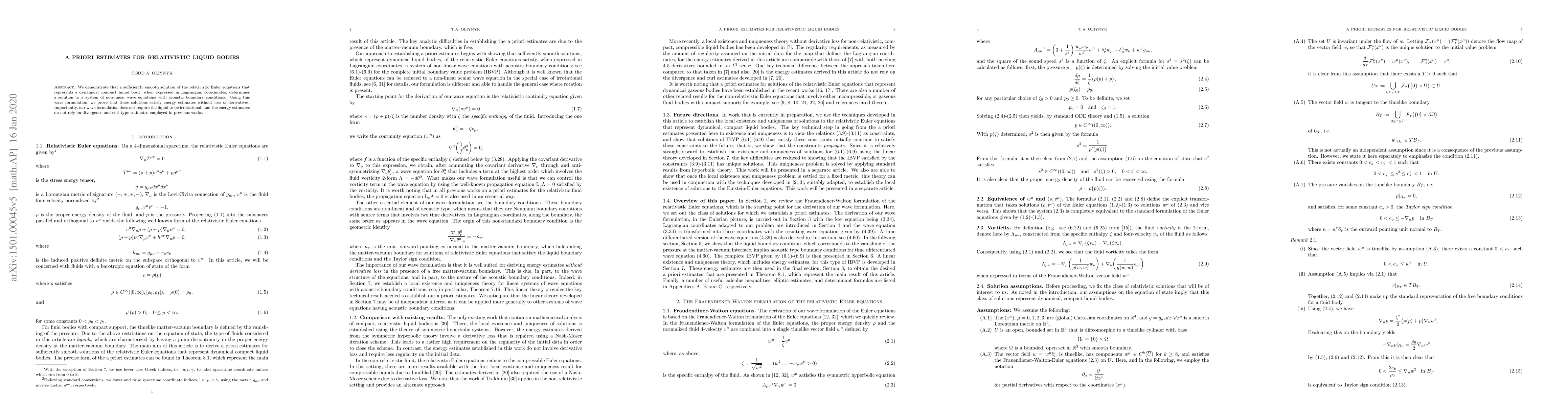 Researchers develop a new wave formulation for relativistic liquid bodies that satisfies energy estimates without loss of derivatives, offering a more flexible approach to studying dynamic compact liquids.