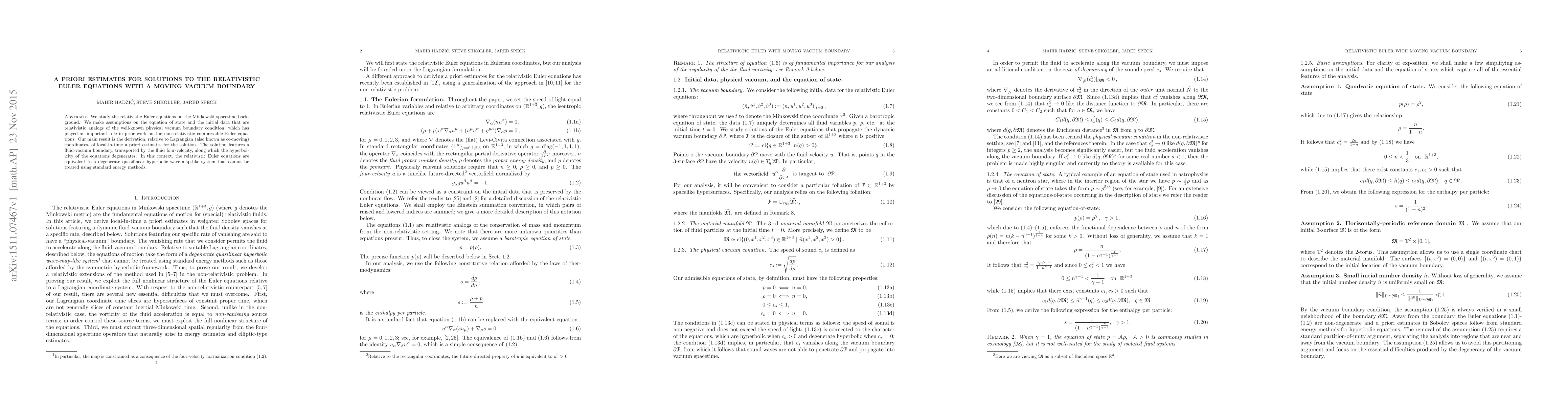 This paper derives local-in-time a priori estimates for solutions to the relativistic Euler equations on Minkowski spacetime, considering a fluid-vacuum boundary. It addresses the challenge of hyperbolicity degeneration along the boundary using a novel approach beyond standard energy methods.