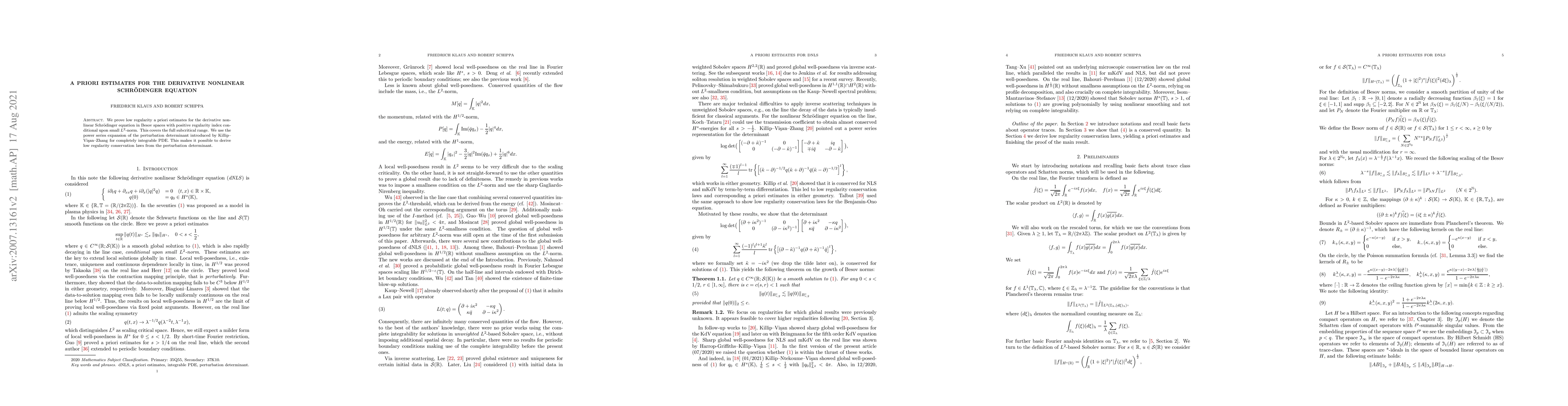 Summary: This paper establishes low regularity a priori estimates for the derivative nonlinear Schrödinger equation in Besov spaces, leveraging the power series expansion of the perturbation determinant to derive conservation laws across the full subcritical range.