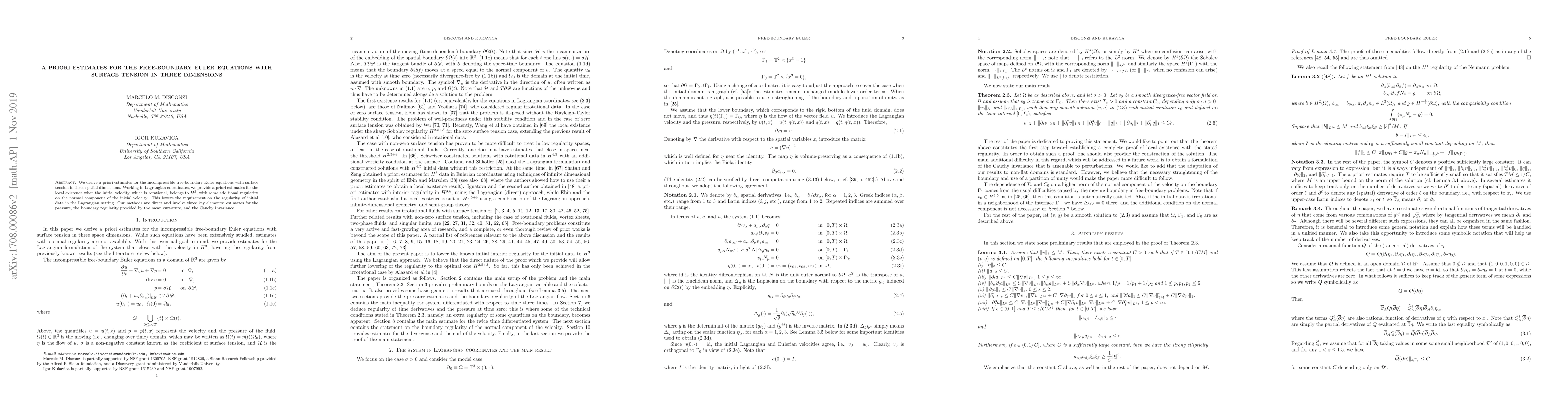 This paper derives a priori estimates for the three-dimensional incompressible free-boundary Euler equations with surface tension, improving the regularity requirements for initial data. The authors provide estimates for pressure, boundary regularity via mean curvature, and utilize Cauchy invariance in a Lagrangian coordinate framework.