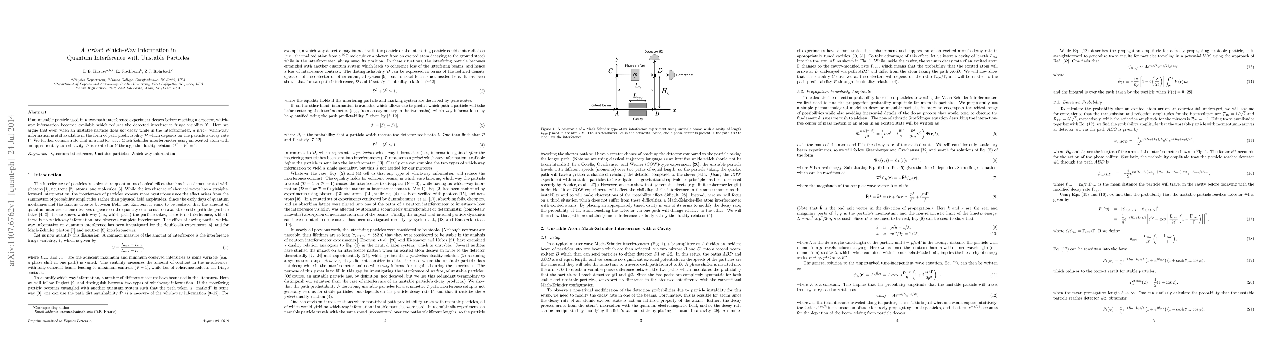 If an unstable particle used in a two-path interference experiment decays before reaching a detector, which-way information becomes available which reduces the detected interference fringe visibility ${\cal V}$. Here we argue that even when an unstable particle does {\em not} decay while in the interferometer, {\em a priori} which-way information is still available in the form of path predictability ${\cal P}$ which depends on the particle's decay rate $\Gamma$. We further demonstrate that in a matter-wave Mach-Zehnder interferometer using an excited atom with an appropriately tuned cavity, ${\cal P}$ is related to ${\cal V}$ through the duality relation ${\cal P}^{2} + {\cal V}^{2} = 1$.