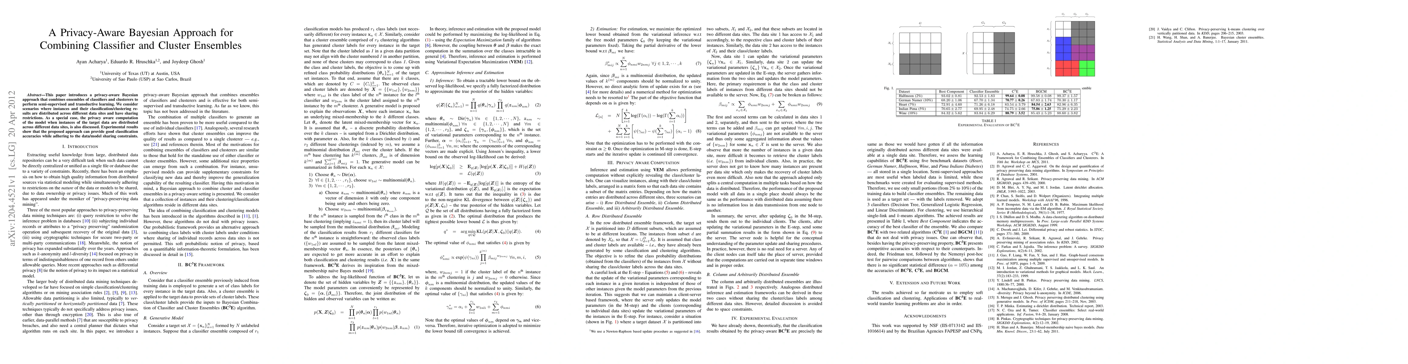 This paper proposes a privacy-aware Bayesian method for combining classifier and cluster ensemble models to facilitate semi-supervised and transductive learning under data sharing restrictions. Experimental results demonstrate high classification accuracy while respecting data distribution and privacy constraints.
