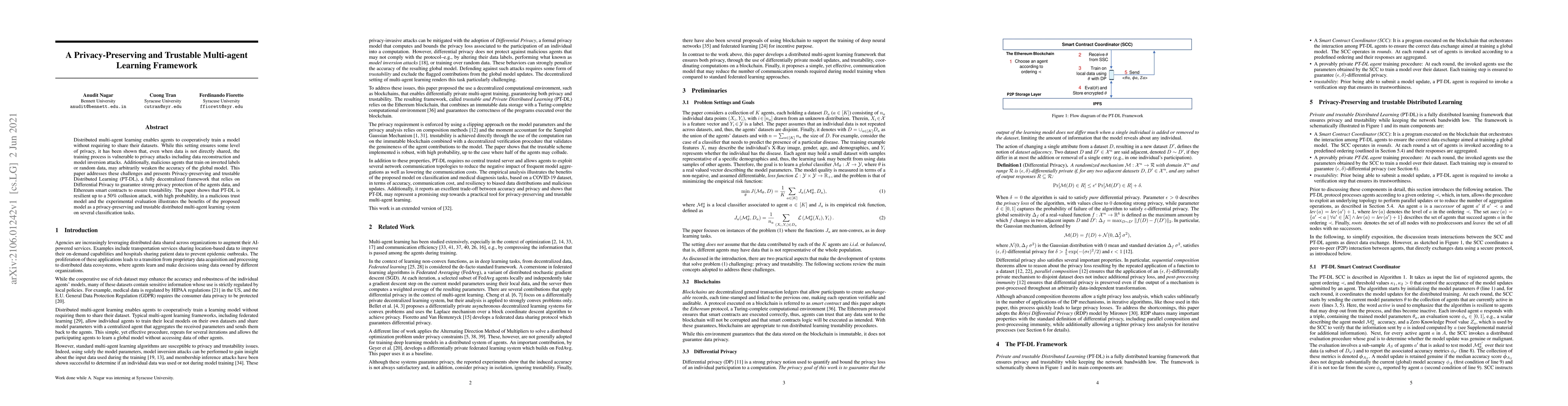 This paper introduces a Privacy-Preserving and Trustable Distributed Learning (PT-DL) framework that uses Differential Privacy to protect agent data and Ethereum smart contracts to ensure trust. The framework is shown to be resilient against up to 50% collusion attacks and effectively enhances privacy and trust in distributed multi-agent learning.