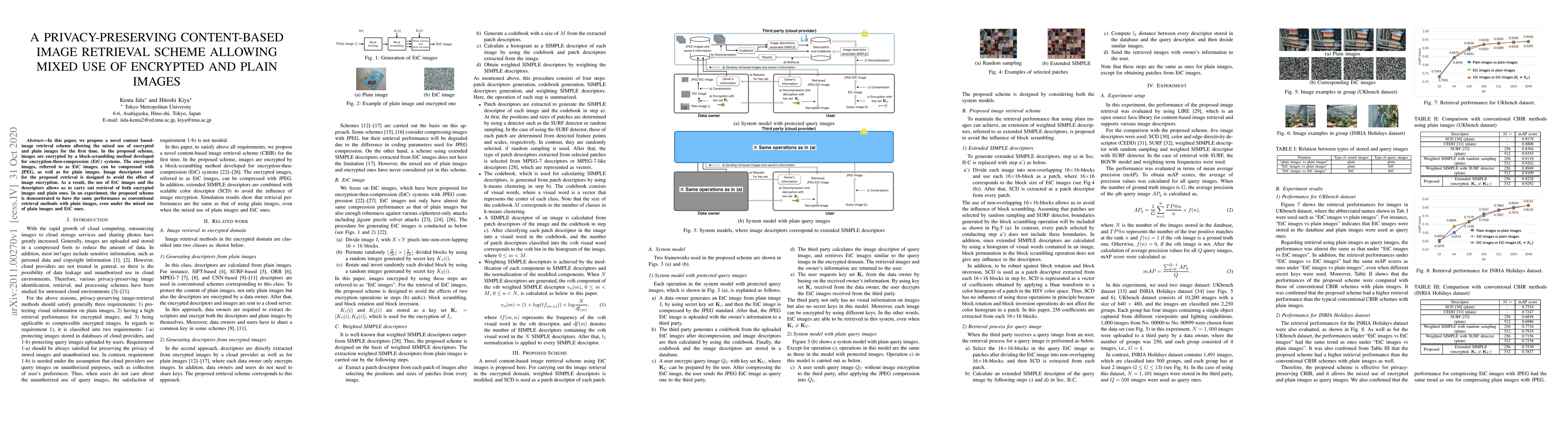 In this paper, we propose a novel content based-image retrieval scheme allowing the mixed use of encrypted and plain images for the first time. In the proposed scheme, images are encrypted by a block-scrambling method developed for encryption-then-compression (EtC) systems. The encrypted images, referred to as EtC images, can be compressed with JPEG, as well as for plain images. Image descriptors used for the proposed retrieval is designed to avoid the effect of image encryption. As a result, the use of EtC images and the descriptors allows us to carry out retrieval of both encrypted images and plain ones. In an experiment, the proposed scheme is demonstrated to have the same performance as conventional retrieval methods with plain images, even under the mixed use of plain images and EtC ones.