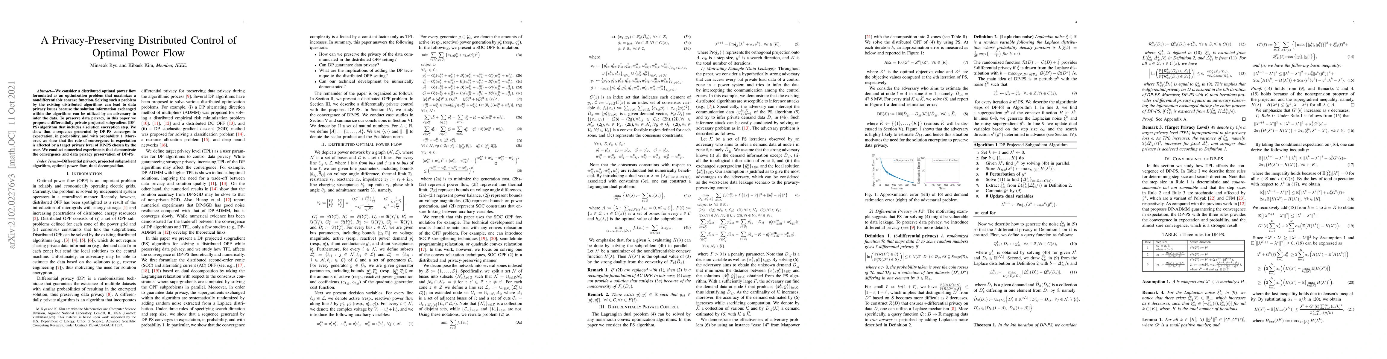 This paper proposes a differentially private projected subgradient (DP-PS) algorithm to solve distributed optimal power flow problems while ensuring data privacy. The DP-PS algorithm includes encryption to protect data, and it demonstrates convergence in various ways, with convergence rate influenced by the chosen privacy level.