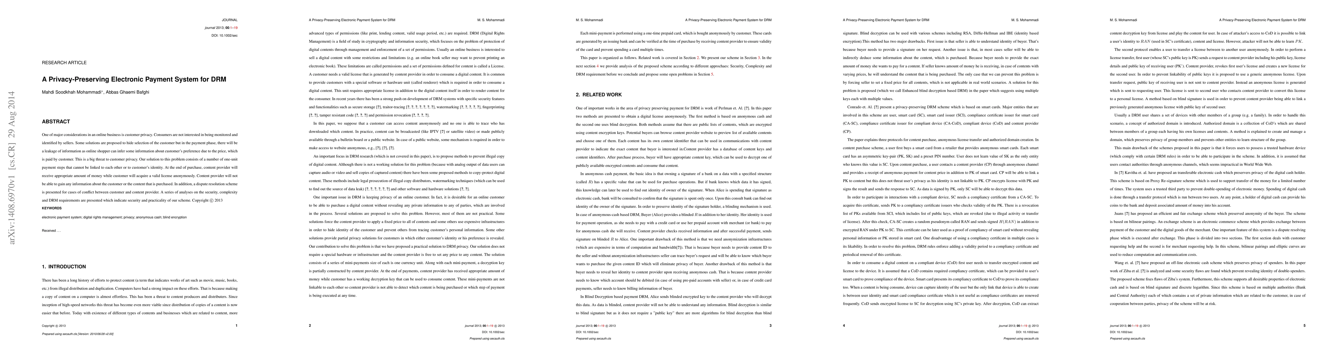 A new payment system is proposed to protect customer privacy in digital rights management (DRM) transactions. It uses multiple one-unit payments that cannot be linked to the customer's identity, ensuring anonymity at checkout.