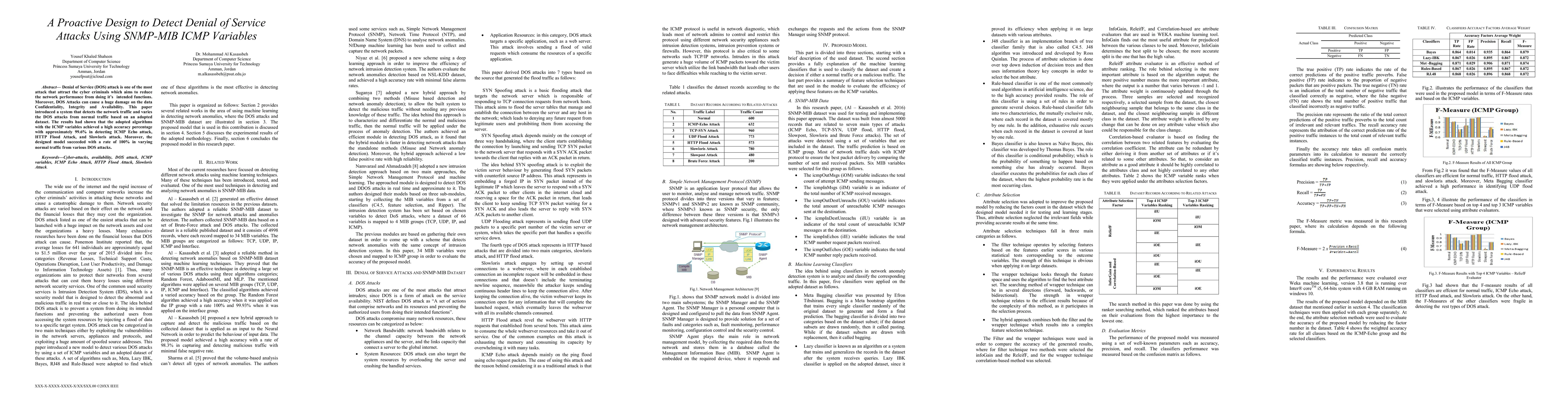 This paper proposes a proactive system using SNMP-MIB and ICMP variables to detect Denial of Service (DoS) attacks, achieving nearly 100% accuracy in distinguishing DoS attacks from normal traffic, including ICMP Echo, HTTP Flood, and Slowloris attacks.