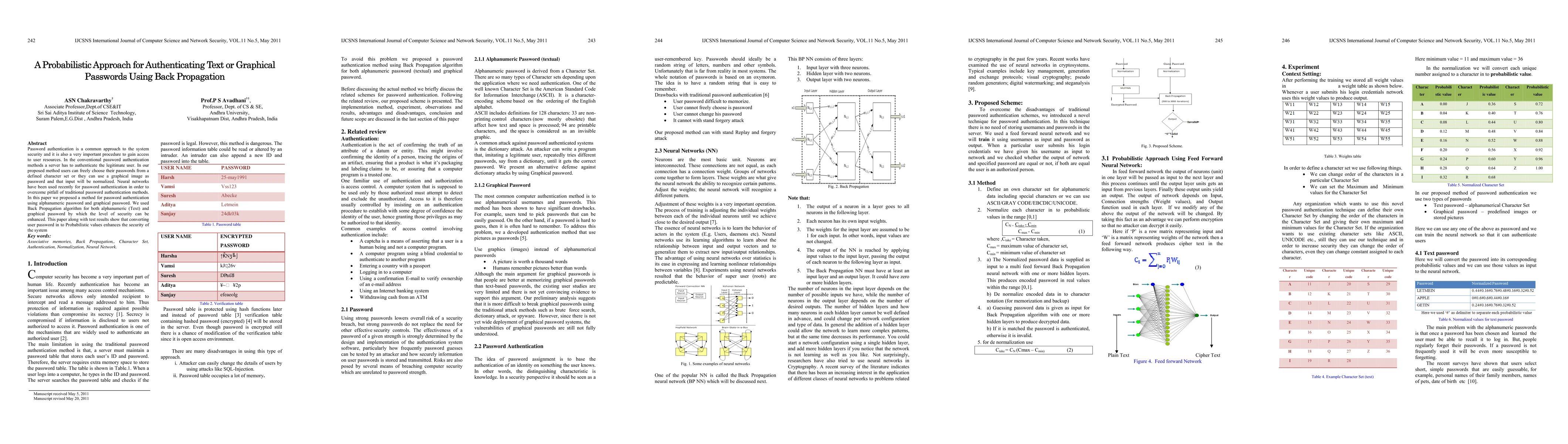 This paper proposes a method for enhancing password authentication using both alphanumeric and graphical passwords, employing the Back Propagation algorithm to convert user inputs into probabilistic values, thereby improving system security. Test results demonstrate the effectiveness of this approach in securing user resources.