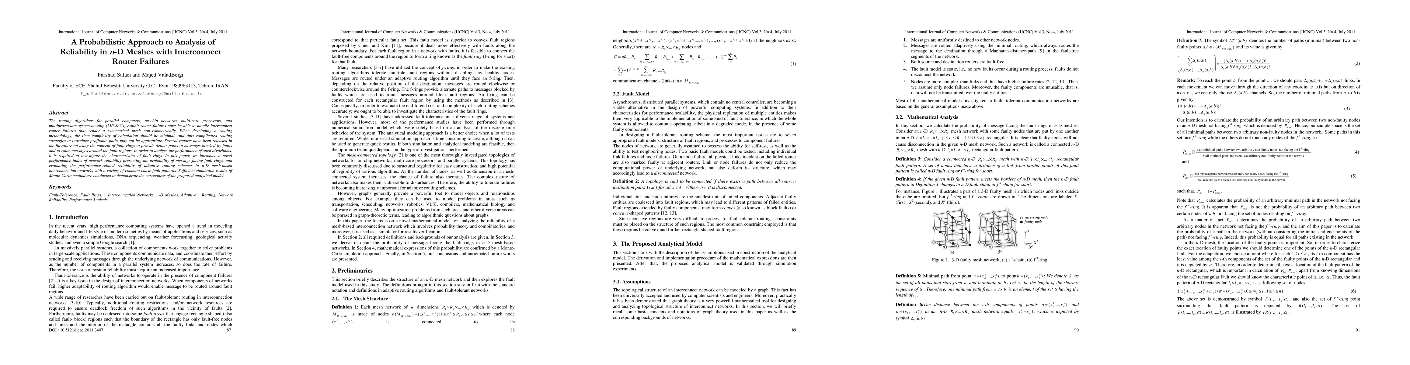 The routing algorithms for parallel computers, on-chip networks, multi-core processors, and multiprocessors system-on-chip (MP-SoCs) exhibit router failures must be able to handle interconnect router failures that render a symmetrical mesh non-symmetrically. When developing a routing methodology, the time complexity of calculation should be minimal, and thus complicated routing strategies to introduce profitable paths may not be appropriate. Several reports have been released in the literature on using the concept of fault rings to provide detour paths to messages blocked by faults and to route messages around the fault regions. In order to analyze the performance of such algorithms, it is required to investigate the characteristics of fault rings. In this paper, we introduce a novel performance index of network reliability presenting the probability of message facing fault rings, and evaluating the performance-related reliability of adaptive routing schemes in n-D mesh-based interconnection networks with a variety of common cause fault patterns. Sufficient simulation results of Monte-Carlo method are conducted to demonstrate the correctness of the proposed analytical model.