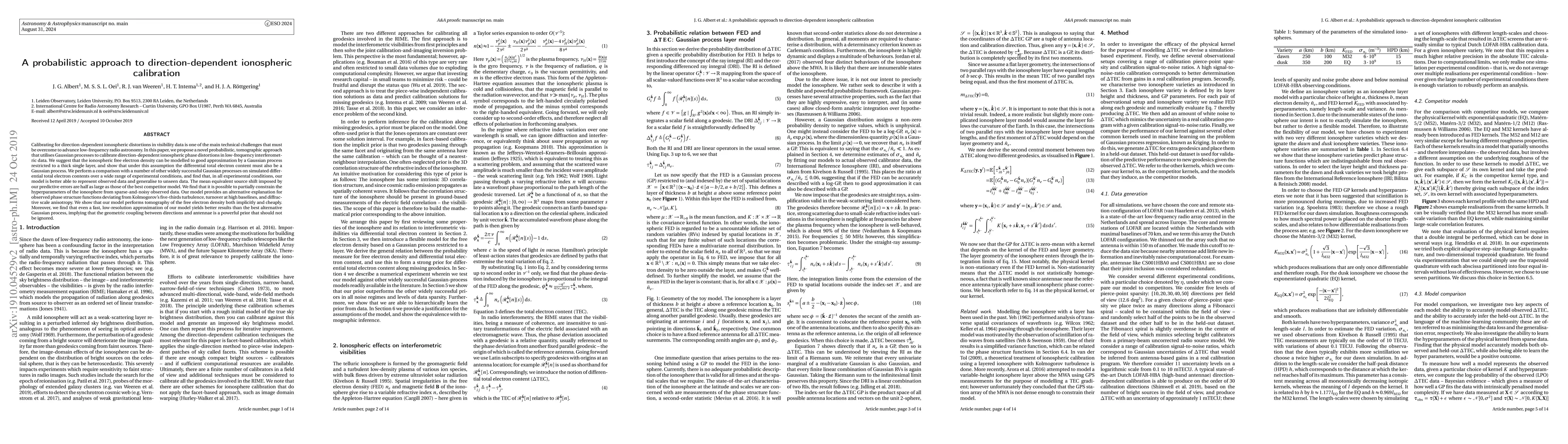 This paper proposes a probabilistic, tomographic approach using Gaussian processes to calibrate direction-dependent ionospheric phase distortions in low-frequency radio astronomy data. The model's performance is shown to outperform competitors, providing better representation and generalization, and it offers insights into observed phase structure functions and ionosphere hyperparameters.