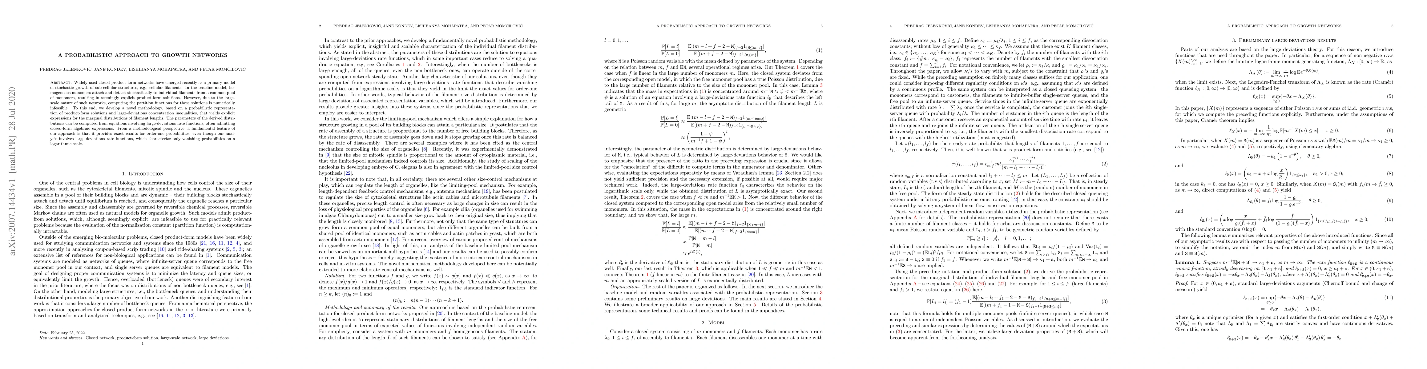 Widely used closed product-form networks have emerged recently as a primary model of stochastic growth of sub-cellular structures, e.g., cellular filaments. In the baseline model, homogeneous monomers attach and detach stochastically to individual filaments from a common pool of monomers, resulting in seemingly explicit product-form solutions. However, due to the large-scale nature of such networks, computing the partition functions for these solutions is numerically infeasible. To this end, we develop a novel methodology, based on a probabilistic representation of product-form solutions and large-deviations concentration inequalities, that yields explicit expressions for the marginal distributions of filament lengths. The parameters of the derived distributions can be computed from equations involving large-deviations rate functions, often admitting closed-form algebraic expressions. From a methodological perspective, a fundamental feature of our approach is that it provides exact results for order-one probabilities, even though our analysis involves large-deviations rate functions, which characterize only vanishing probabilities on a logarithmic scale.
