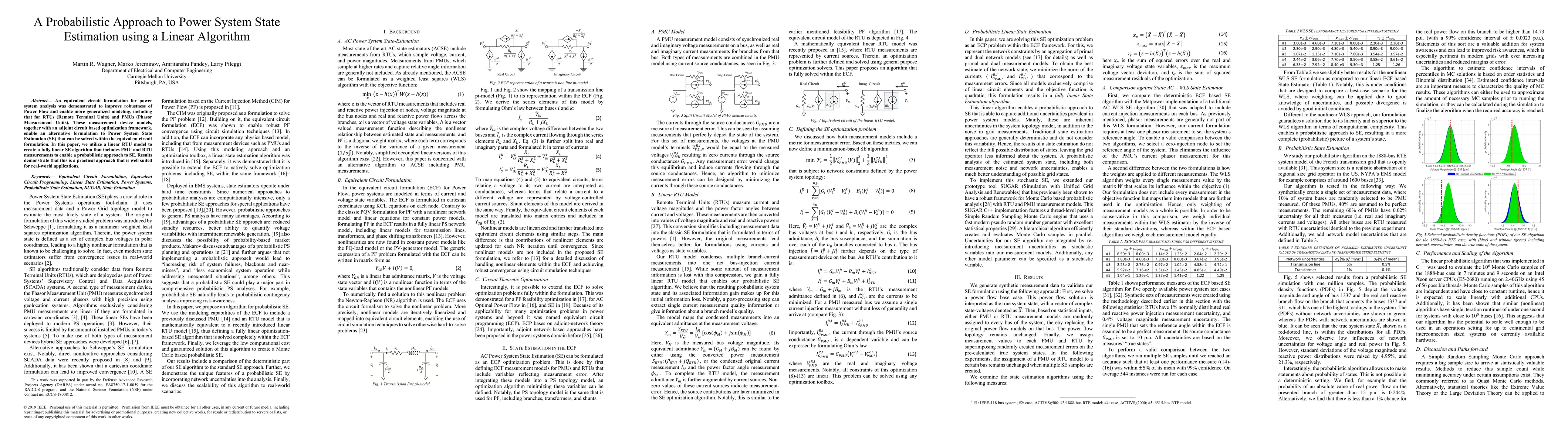 An equivalent circuit formulation for power system analysis was demonstrated to improve robustness of Power Flow and enable more generalized modeling, including that for RTUs (Remote Terminal Units) and PMUs (Phasor Measurement Units). These measurement device models, together with an adjoint circuit based optimization framework, enable an alternative formulation to Power System State Estimation (SE) that can be solved within the equivalent circuit formulation. In this paper, we utilize a linear RTU model to create a fully linear SE algorithm that includes PMU and RTU measurements to enable a probabilistic approach to SE. Results demonstrate that this is a practical approach that is well suited for real-world applications.
