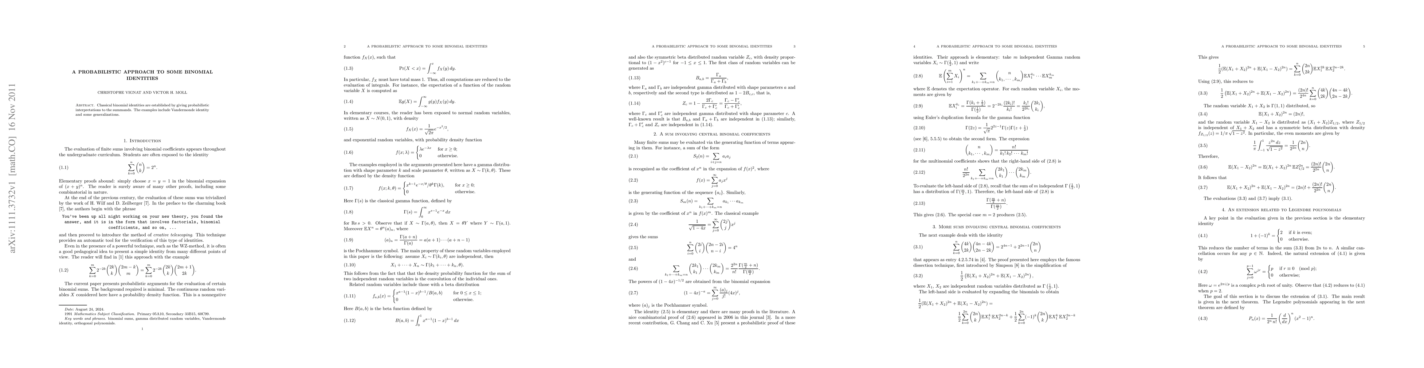 This paper establishes classical binomial identities through probabilistic interpretations of the summands, providing new insights into identities like Vandermonde's and its generalizations. The probabilistic approach enhances the understanding and derivation of these identities.