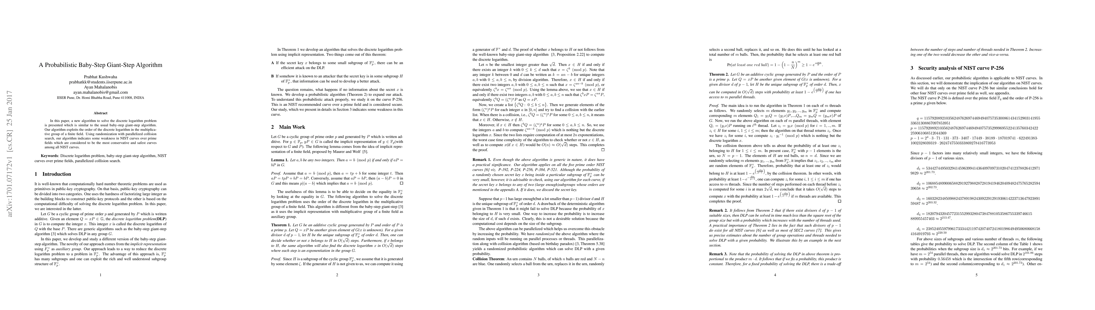 A new algorithm exploits order in discrete logarithm groups to weaken NIST curves, suggesting a potential security risk for some prime field-based curves.