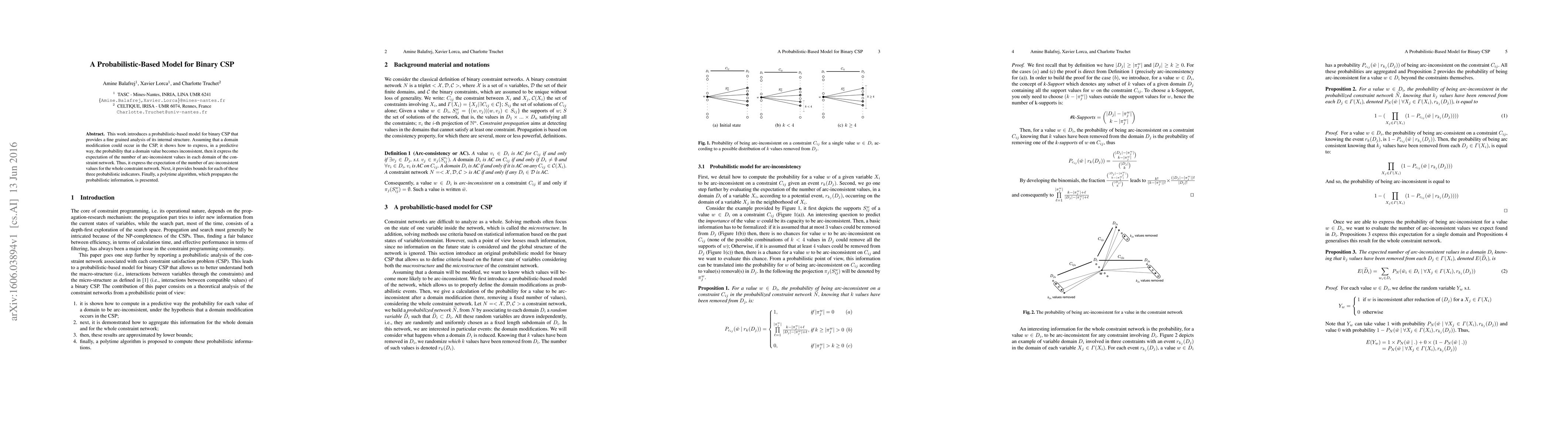 This work introduces a probabilistic-based model for binary CSP that provides a fine grained analysis of its internal structure. Assuming that a domain modification could occur in the CSP, it shows how to express, in a predictive way, the probability that a domain value becomes inconsistent, then it express the expectation of the number of arc-inconsistent values in each domain of the constraint network. Thus, it express the expectation of the number of arc-inconsistent values for the whole constraint network. Next, it provides bounds for each of these three probabilistic indicators. Finally, a polytime algorithm, which propagates the probabilistic information, is presented.