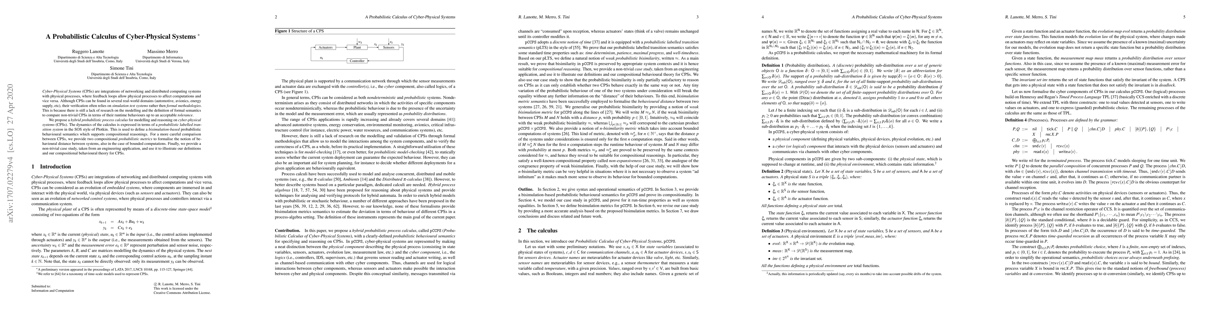 This paper introduces a hybrid probabilistic process calculus for modelling and reasoning about cyber-physical systems, employing a probabilistic labelled transition system to define compositional behavioural semantics and metrics for comparing system behaviours. The approach is demonstrated through an engineering application case study.