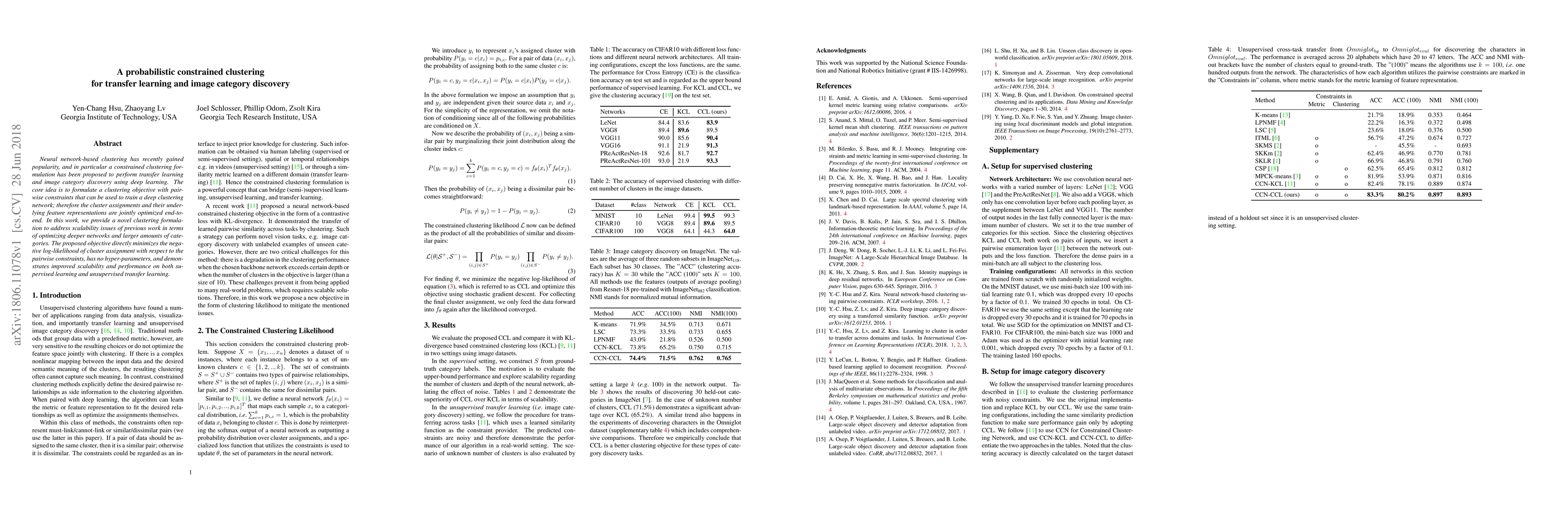 Neural network-based clustering has recently gained popularity, and in particular a constrained clustering formulation has been proposed to perform transfer learning and image category discovery using deep learning. The core idea is to formulate a clustering objective with pairwise constraints that can be used to train a deep clustering network; therefore the cluster assignments and their underlying feature representations are jointly optimized end-to-end. In this work, we provide a novel clustering formulation to address scalability issues of previous work in terms of optimizing deeper networks and larger amounts of categories. The proposed objective directly minimizes the negative log-likelihood of cluster assignment with respect to the pairwise constraints, has no hyper-parameters, and demonstrates improved scalability and performance on both supervised learning and unsupervised transfer learning.