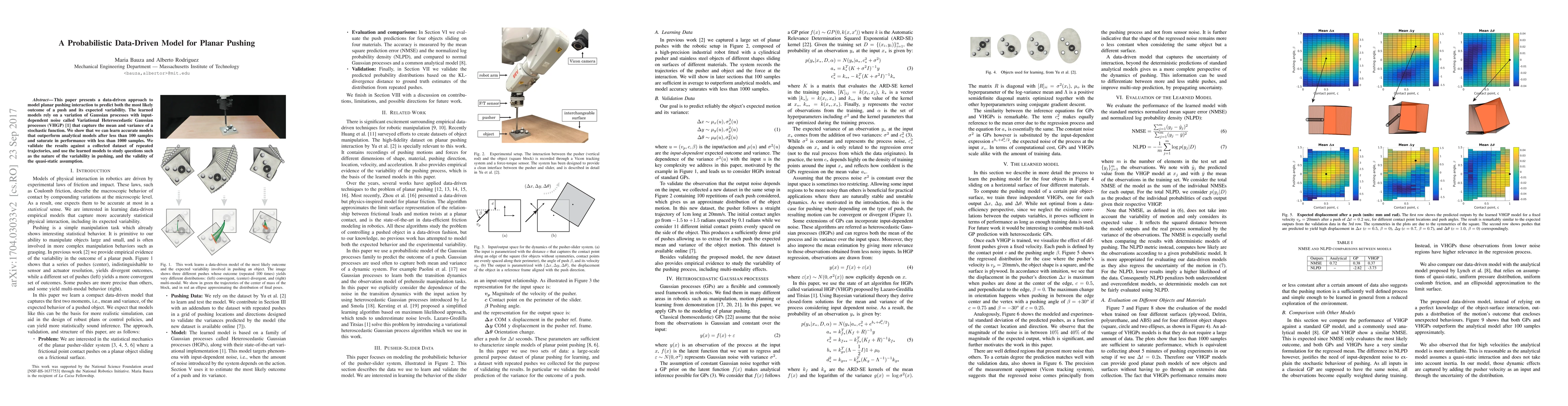 Researchers developed a data-driven model to predict outcomes of planar pushing interactions with high accuracy using just 100 samples, outperforming analytical models in the process.