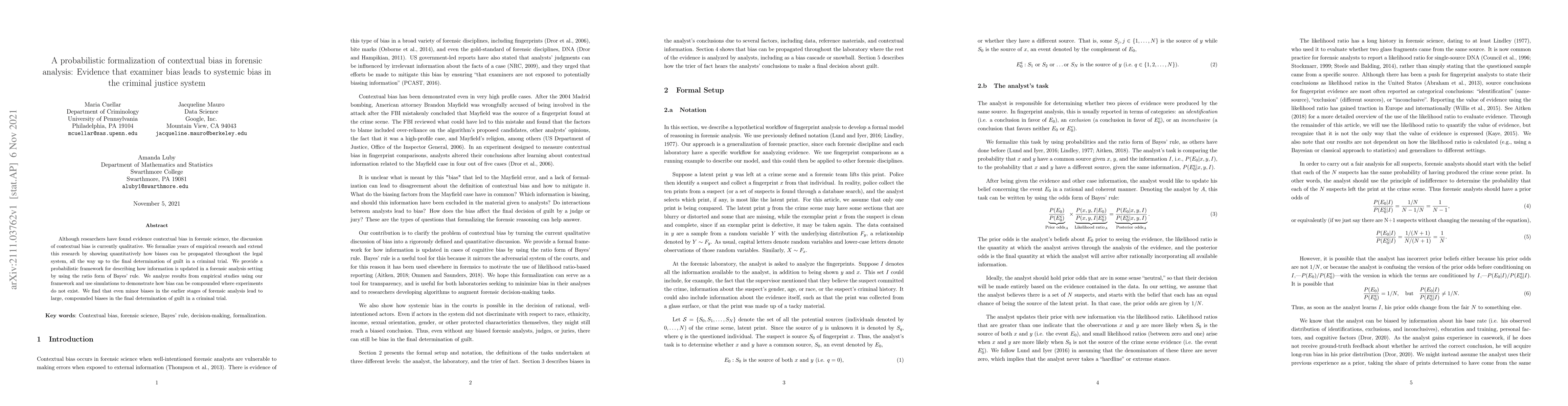 Although researchers have found evidence contextual bias in forensic science, the discussion of contextual bias is currently qualitative. We formalize years of empirical research and extend this research by showing quantitatively how biases can be propagated throughout the legal system, all the way up to the final determination of guilt in a criminal trial. We provide a probabilistic framework for describing how information is updated in a forensic analysis setting by using the ratio form of Bayes' rule. We analyze results from empirical studies using our framework and use simulations to demonstrate how bias can be compounded where experiments do not exist. We find that even minor biases in the earlier stages of forensic analysis lead to large, compounded biases in the final determination of guilt in a criminal trial.