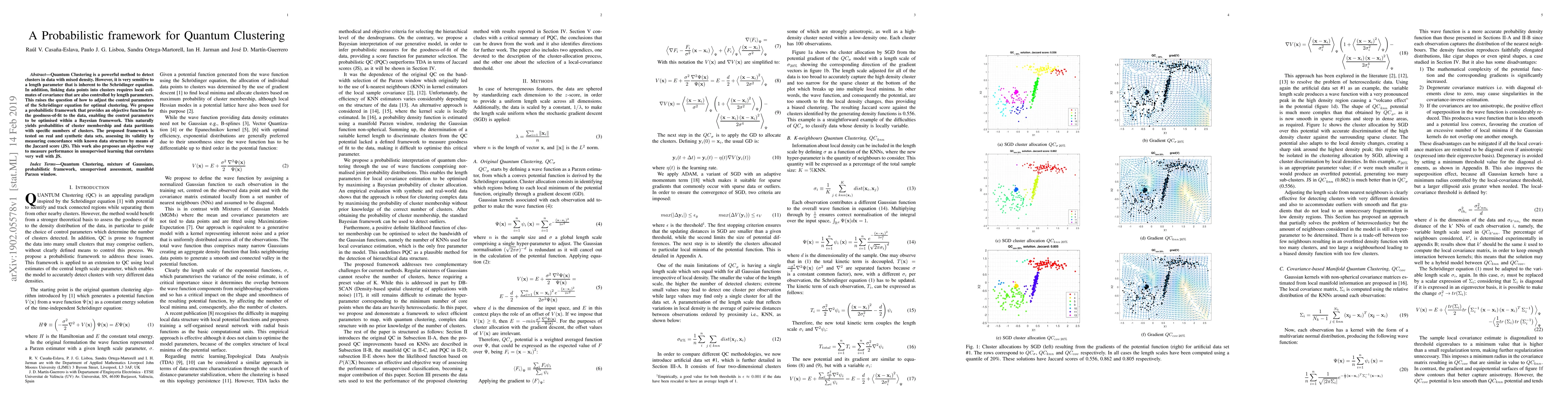 This paper proposes a probabilistic framework for optimizing quantum clustering by adjusting the control parameters of the Schrödinger equation within a Bayesian framework. The framework provides an objective function for goodness-of-fit, yielding probabilities of cluster membership and validated by the Jaccard score on both real and synthetic datasets.