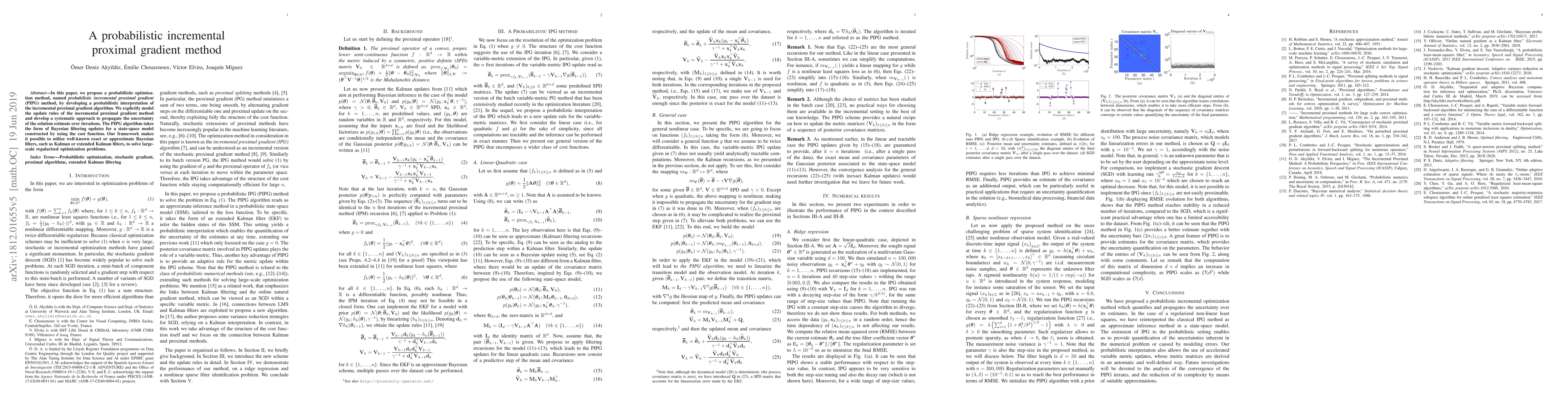 This paper introduces a probabilistic incremental proximal gradient (PIPG) method, which models the incremental proximal gradient algorithm through a probabilistic framework. The PIPG algorithm leverages Bayesian filtering updates for a state-space model based on the cost function, enabling the use of exact or approximate Bayesian filters to tackle large-scale regularized optimization problems.