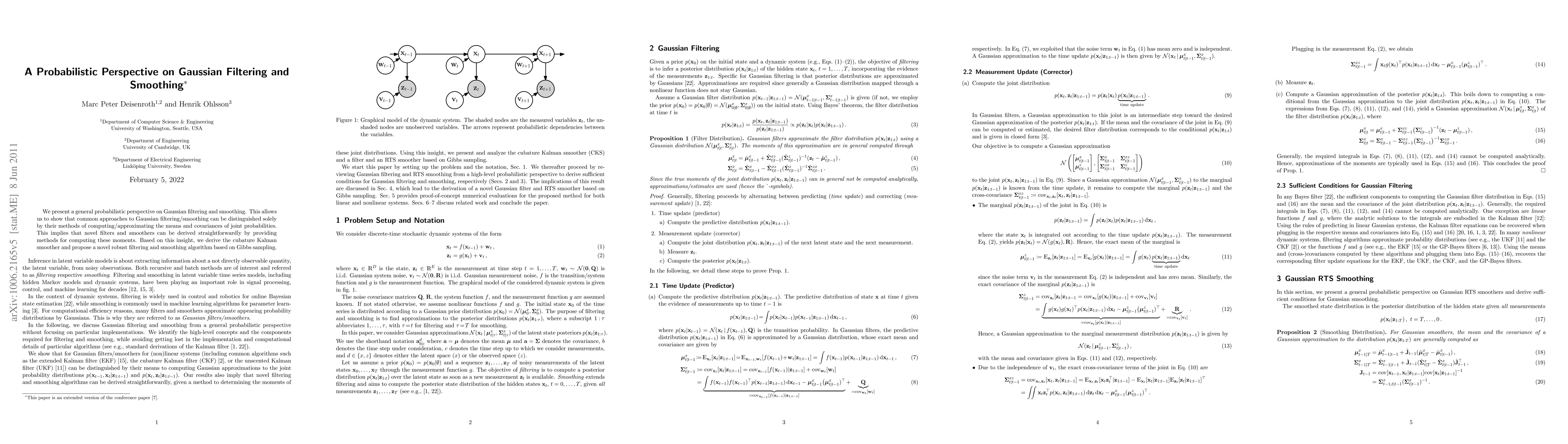 This paper offers a probabilistic framework for Gaussian filtering and smoothing, demonstrating that variations in these methods arise from different approaches to calculating joint probability means and covariances. It introduces the cubature Kalman smoother and proposes a novel robust filtering and smoothing algorithm using Gibbs sampling.
