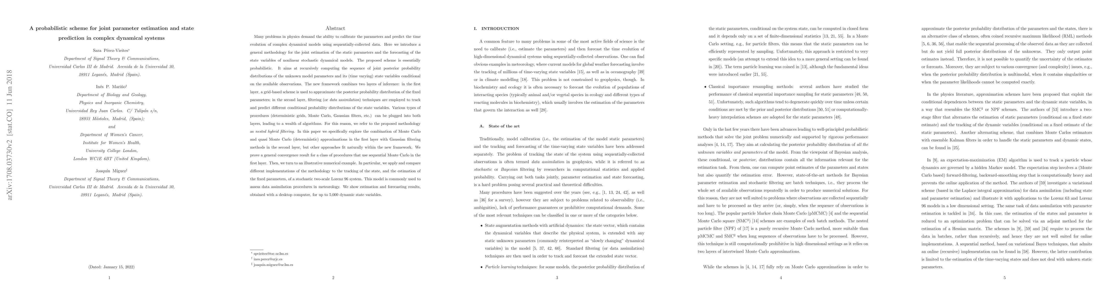 A new probabilistic method, called nested filtering, is introduced for jointly estimating model parameters and predicting state variables in complex dynamical systems using sequentially-collected data.