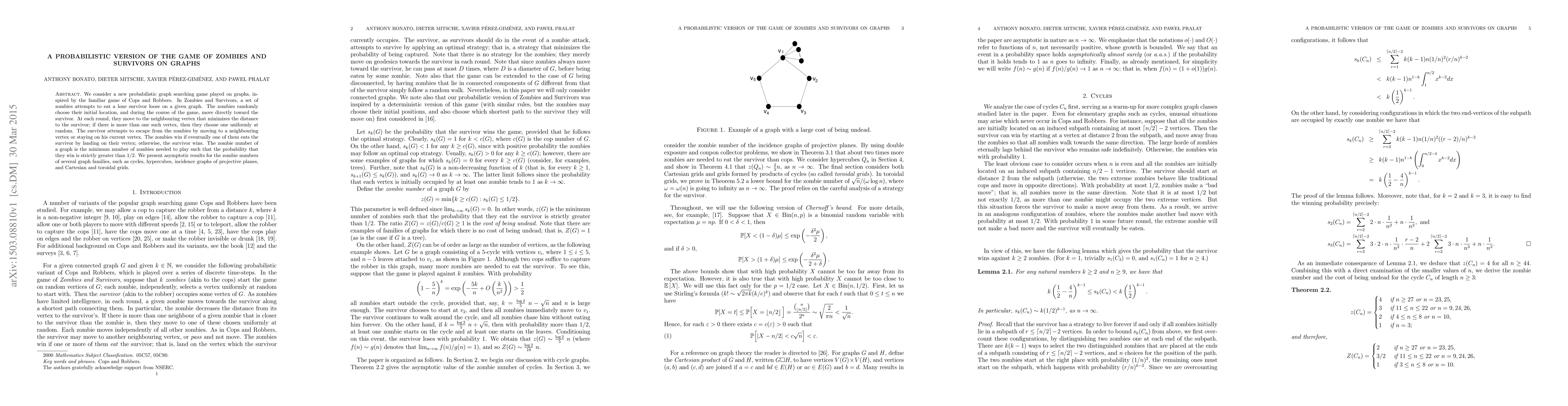 This paper introduces a probabilistic version of the game Zombies and Survivors on graphs, where zombies move towards a lone survivor to win, and analyzes the minimum number of zombies needed for them to have more than a 50% chance of winning on various graph families.
