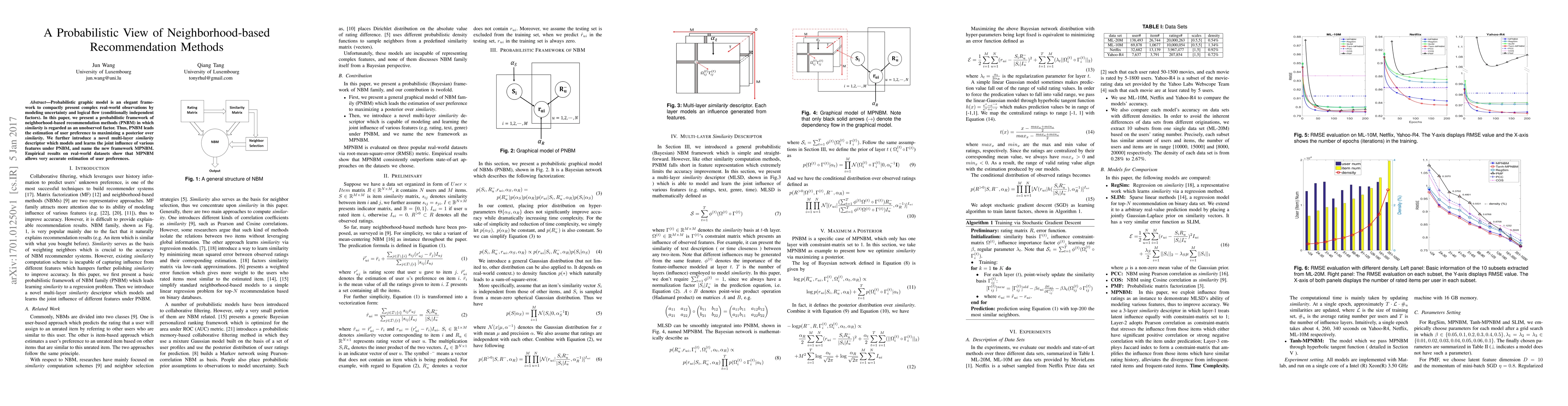 Probabilistic graphic model is an elegant framework to compactly present complex real-world observations by modeling uncertainty and logical flow (conditionally independent factors). In this paper, we present a probabilistic framework of neighborhood-based recommendation methods (PNBM) in which similarity is regarded as an unobserved factor. Thus, PNBM leads the estimation of user preference to maximizing a posterior over similarity. We further introduce a novel multi-layer similarity descriptor which models and learns the joint influence of various features under PNBM, and name the new framework MPNBM. Empirical results on real-world datasets show that MPNBM allows very accurate estimation of user preferences.