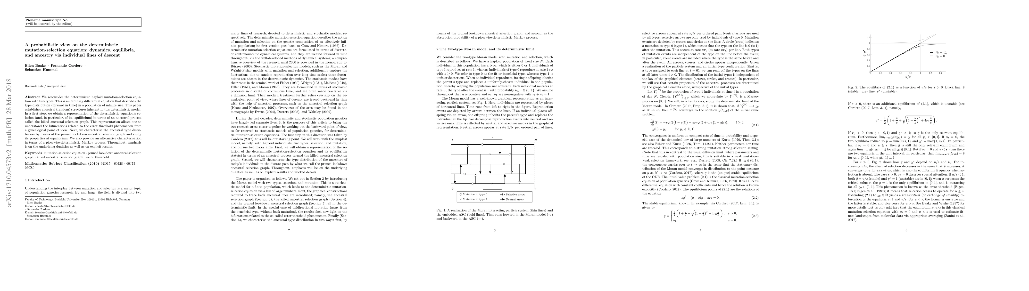 This paper explores the deterministic mutation-selection equation through a probabilistic lens, revealing ancestral structures inherent in the model. It introduces the killed ancestral selection graph to represent the equation's solutions and equilibria, providing insights into the error threshold phenomenon.