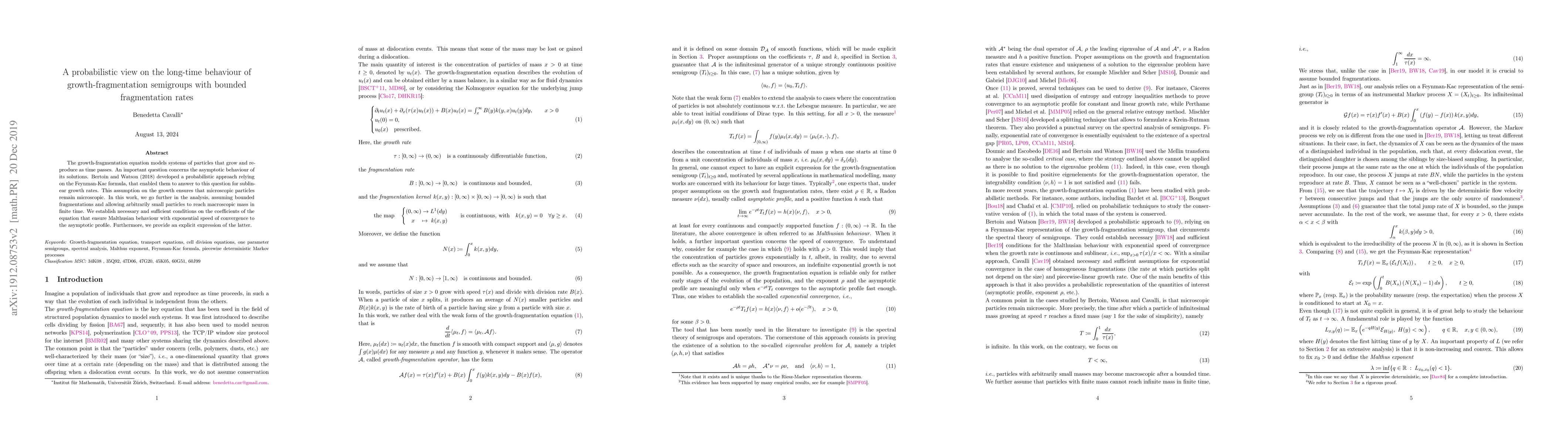 This paper investigates the long-term behavior of growth-fragmentation semigroups under bounded fragmentation rates, extending previous results for sublinear growth. It establishes necessary and sufficient conditions for Malthusian behavior and provides an explicit expression for the asymptotic profile.