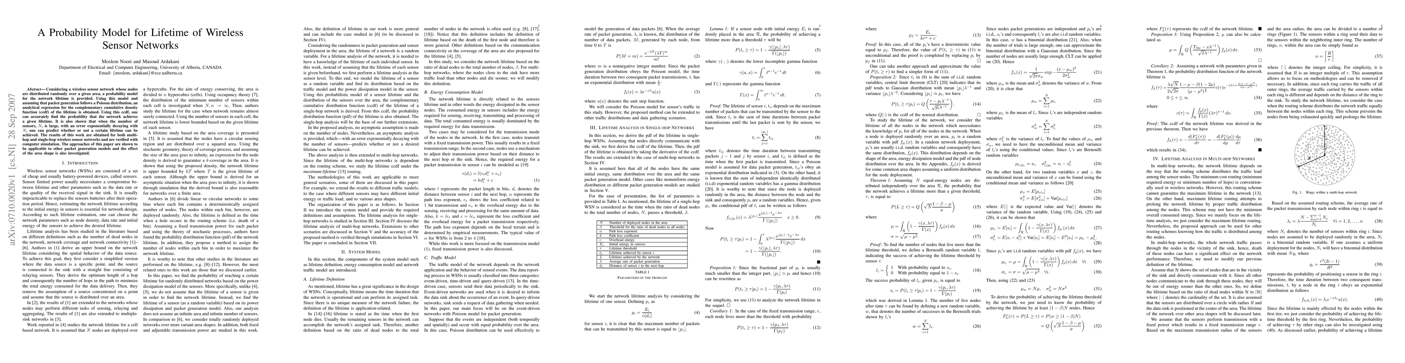 This paper develops a probability model to predict the lifetime of wireless sensor networks, deriving an analytical expression for the complementary cumulative density function (ccdf) of network lifetime. The model is validated for both multi-hop and single-hop networks, and its applicability to various packet generation models and different area shapes is demonstrated through simulations.