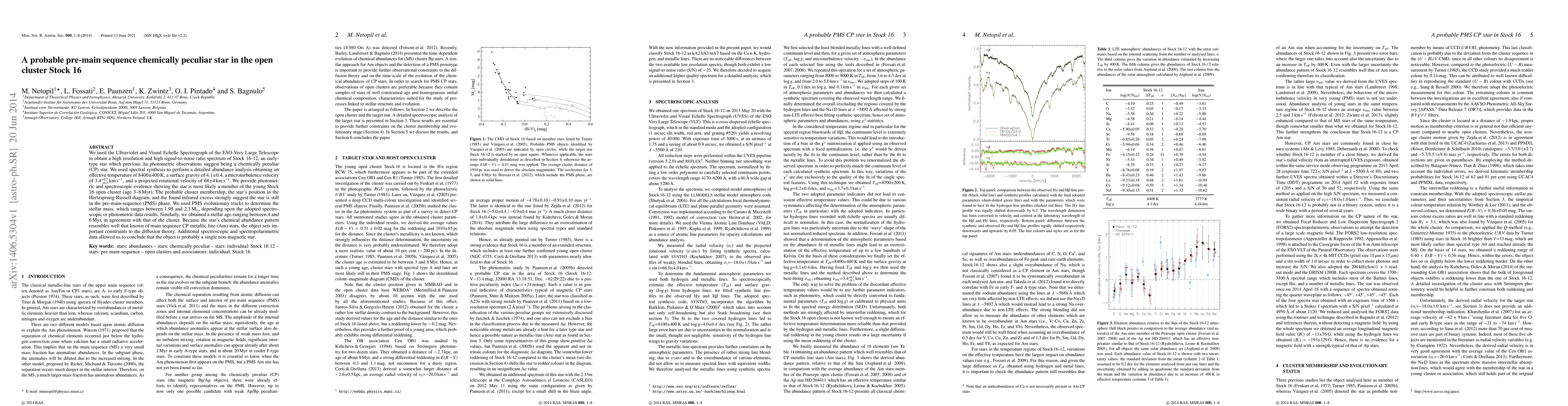 Researchers identified a chemically peculiar star in the young open cluster Stock 16, suggesting it is still in its pre-main-sequence phase with a mass between 1.95 and 2.3 Msun.