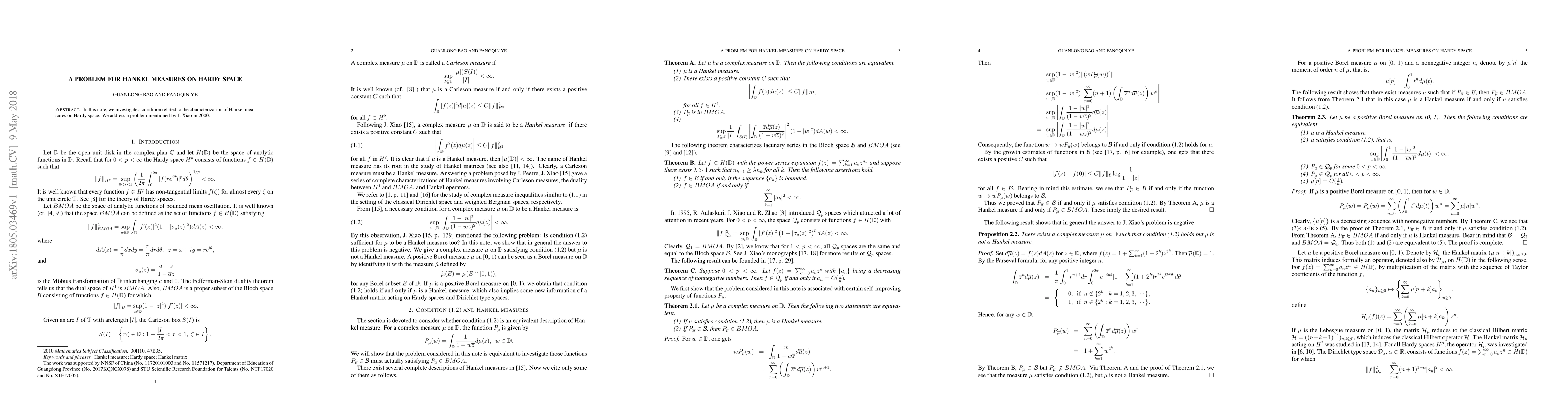 In this note, we investigate a condition related to the characterization of Hankel measures on Hardy space. We address a problem mentioned by J. Xiao in 2000.