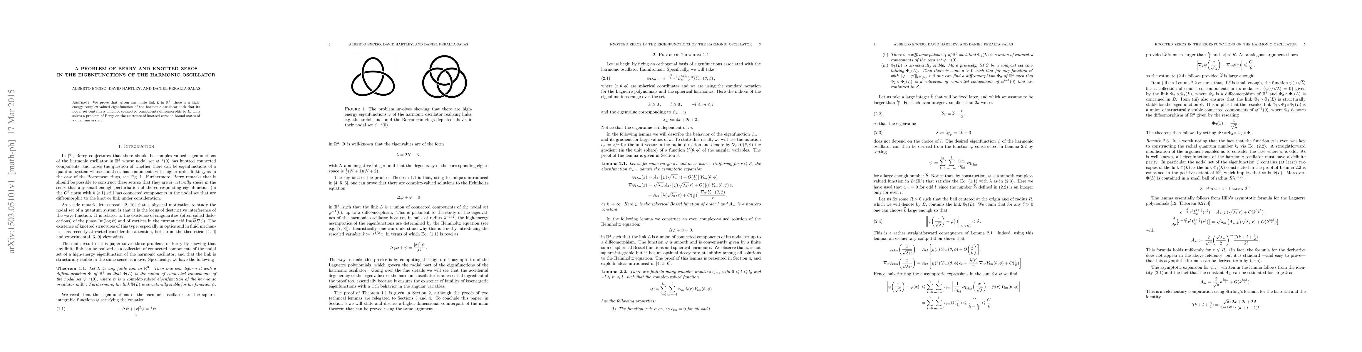 Summary: This paper proves the existence of high energy eigenfunctions of the harmonic oscillator whose nodal sets contain knotted structures diffeomorphic to any given finite link in R^3, solving a longstanding problem posed by Berry regarding knotted zeros in quantum bound states.