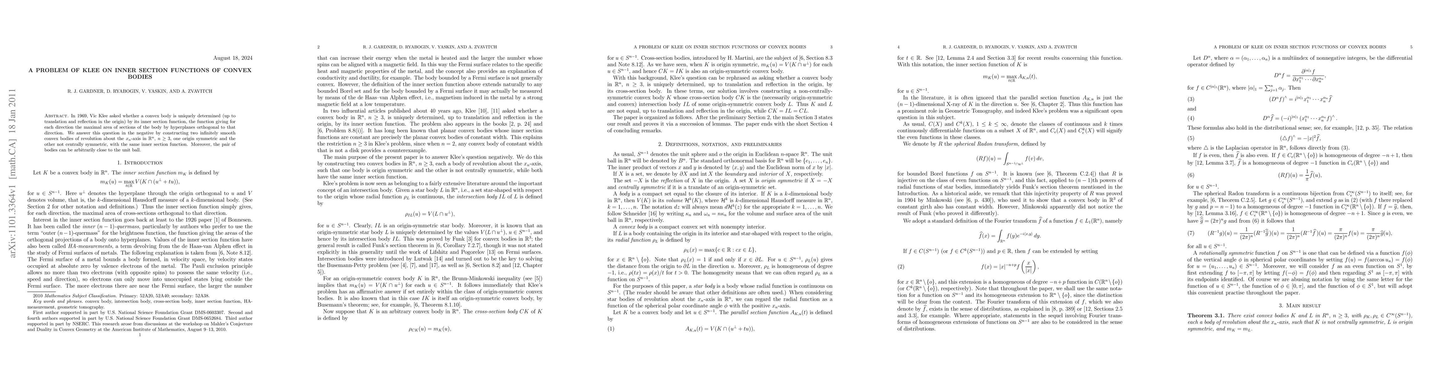 This paper disproves Klee's 1969 conjecture that a convex body is uniquely determined by its inner section function. The authors construct two infinitely smooth convex bodies with identical inner section functions, demonstrating that non-uniqueness can occur even when the bodies are close to the unit ball.