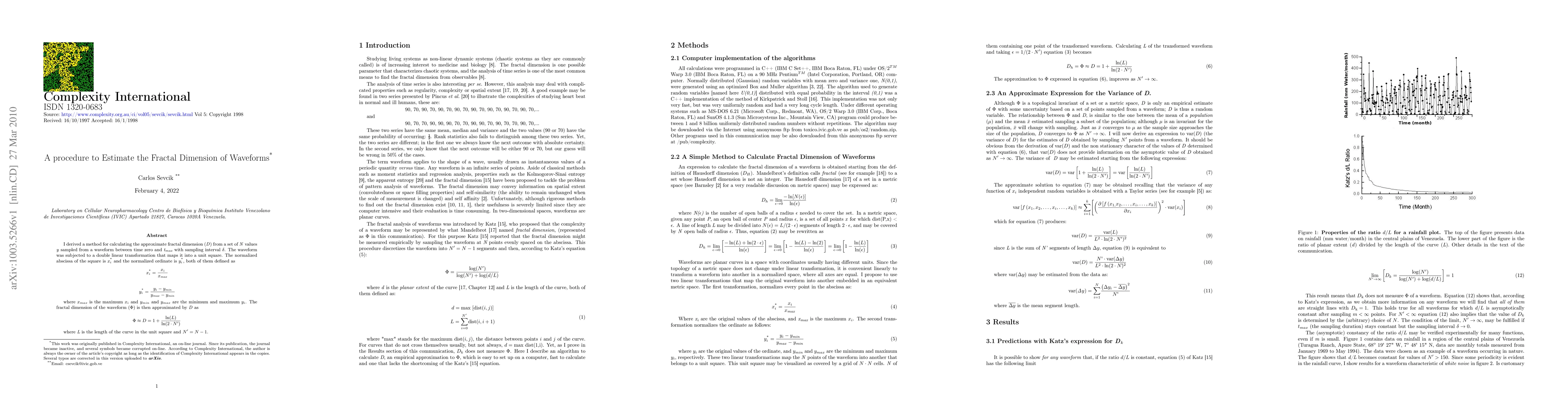 A method is described for calculating the approximate fractal dimension from a set of N values y sampled from a waveform between time zero and t. The waveform was subjected to a double linear transformation that maps it into a unit square.