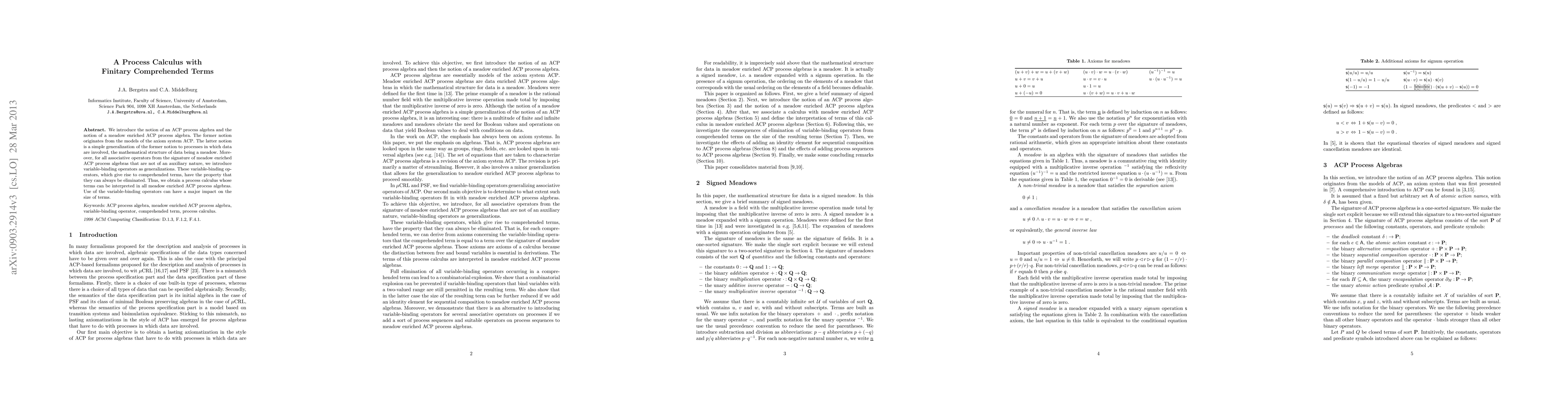 We introduce the notion of an ACP process algebra and the notion of a meadow enriched ACP process algebra. The former notion originates from the models of the axiom system ACP. The latter notion is a simple generalization of the former notion to processes in which data are involved, the mathematical structure of data being a meadow. Moreover, for all associative operators from the signature of meadow enriched ACP process algebras that are not of an auxiliary nature, we introduce variable-binding operators as generalizations. These variable-binding operators, which give rise to comprehended terms, have the property that they can always be eliminated. Thus, we obtain a process calculus whose terms can be interpreted in all meadow enriched ACP process algebras. Use of the variable-binding operators can have a major impact on the size of terms.