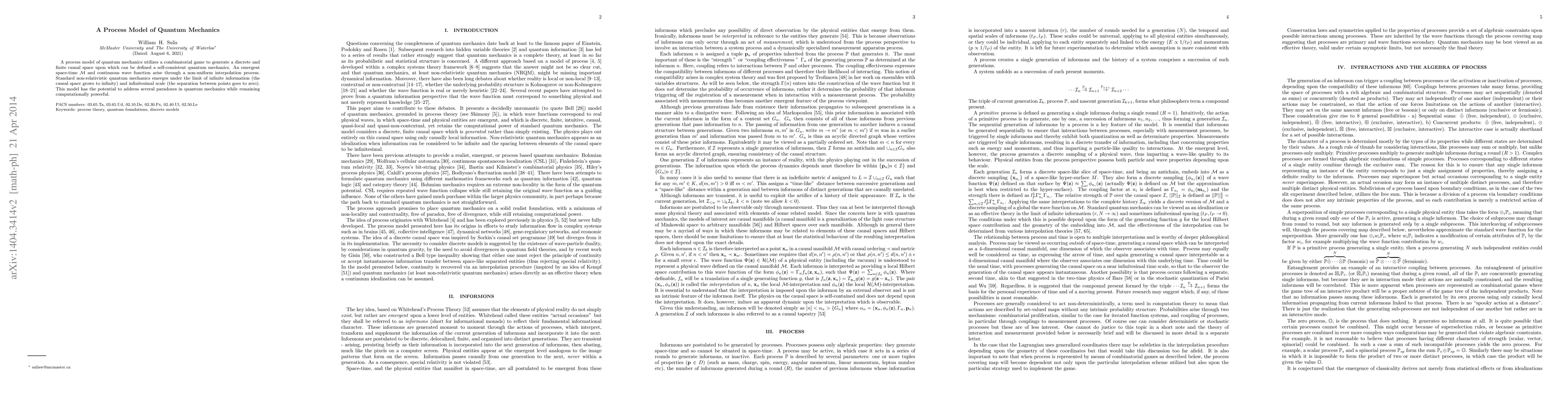 This paper proposes a process model of quantum mechanics based on a combinatorial game, generating a finite causal space that leads to emergent space-time and wave functions. It aims to resolve quantum paradoxes while maintaining computational efficiency.