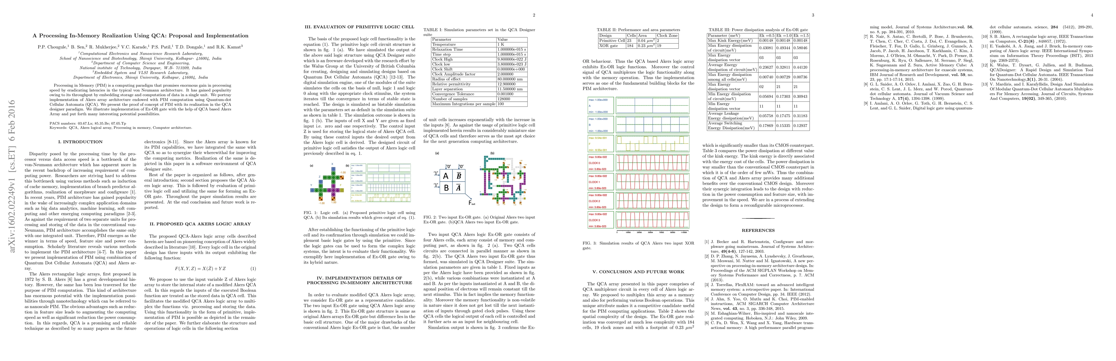 Processing in Memory (PIM) is a computing paradigm that promises enormous gain in processing speed by eradicating latencies in the typical von Neumann architecture. It has gained popularity owing to its throughput by embedding storage and computation of data in a single unit. We portray implementation of Akers array architecture endowed with PIM computation using Quantum-dot Cellular Automata (QCA). We present the proof of concept of PIM with its realization in the QCA designer paradigm. We illustrate implementation of Ex-OR gate with the help of QCA based Akers Array and put forth many interesting potential possibilities.