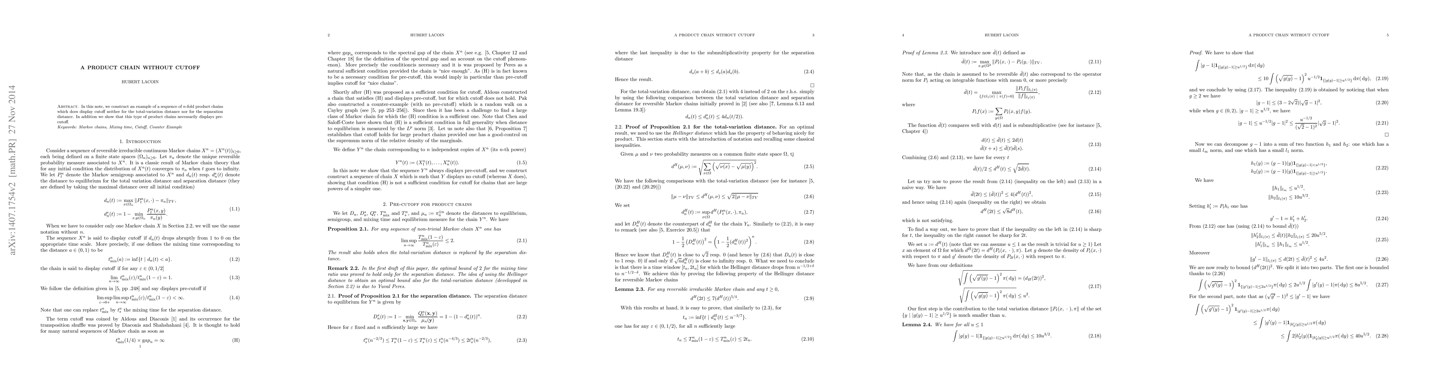 Summary: This paper presents a sequence of $n$-fold product chains that lack cutoff in total-variation and separation distances, while demonstrating the presence of pre-cutoff behavior. The construction highlights the complexity of convergence in product chains.