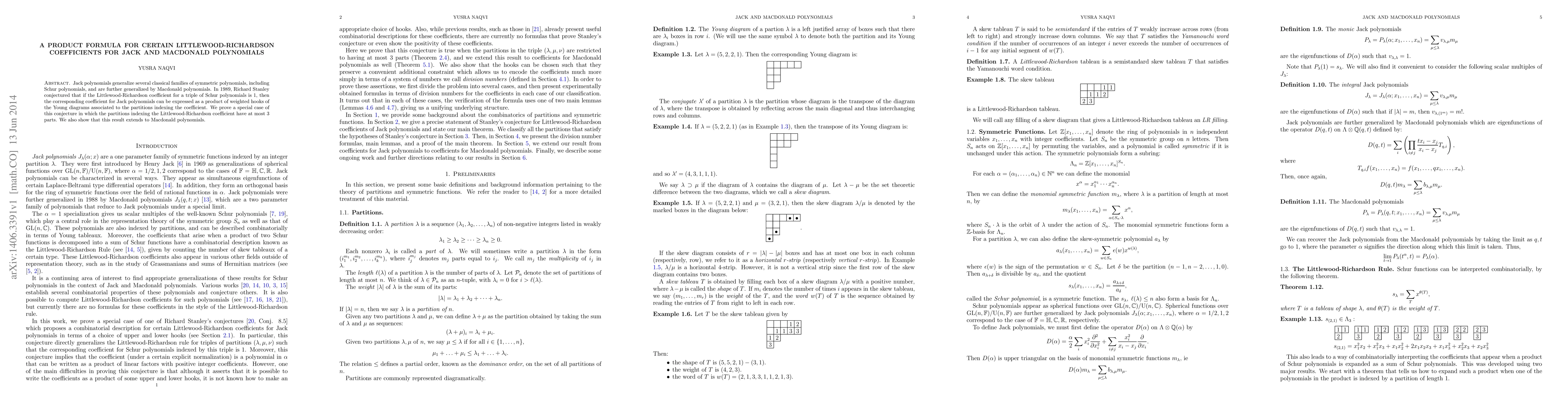 Summary: This paper proves a special case of Stanley's 1989 conjecture regarding Littlewood-Richardson coefficients for Jack polynomials, showing that certain coefficients can be expressed as products of weighted hooks. The result is further extended to Macdonald polynomials.