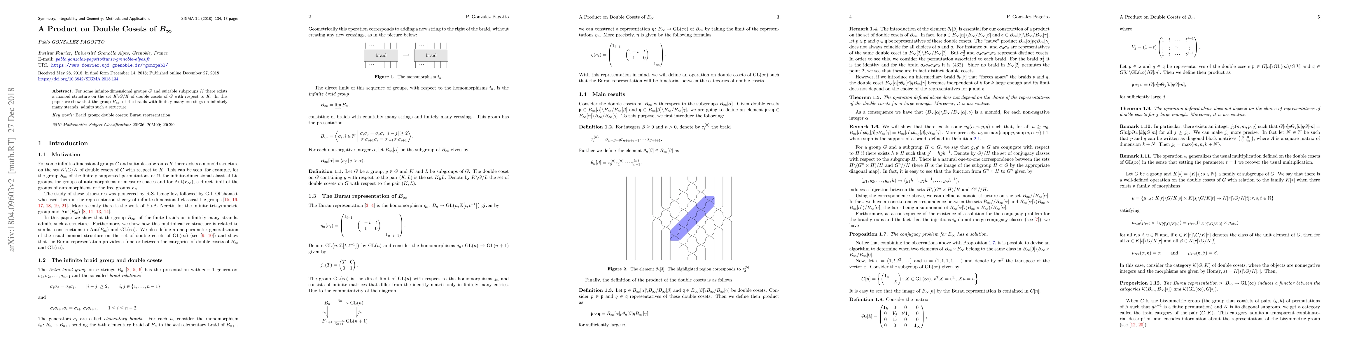 For some infinite-dimensional groups $G$ and suitable subgroups $K$ there exists a monoid structure on the set $K\backslash G/K$ of double cosets of $G$ with respect to $K$. In this paper we show that the group $B_\infty$, of the braids with finitely many crossings on infinitely many strands, admits such a structure.