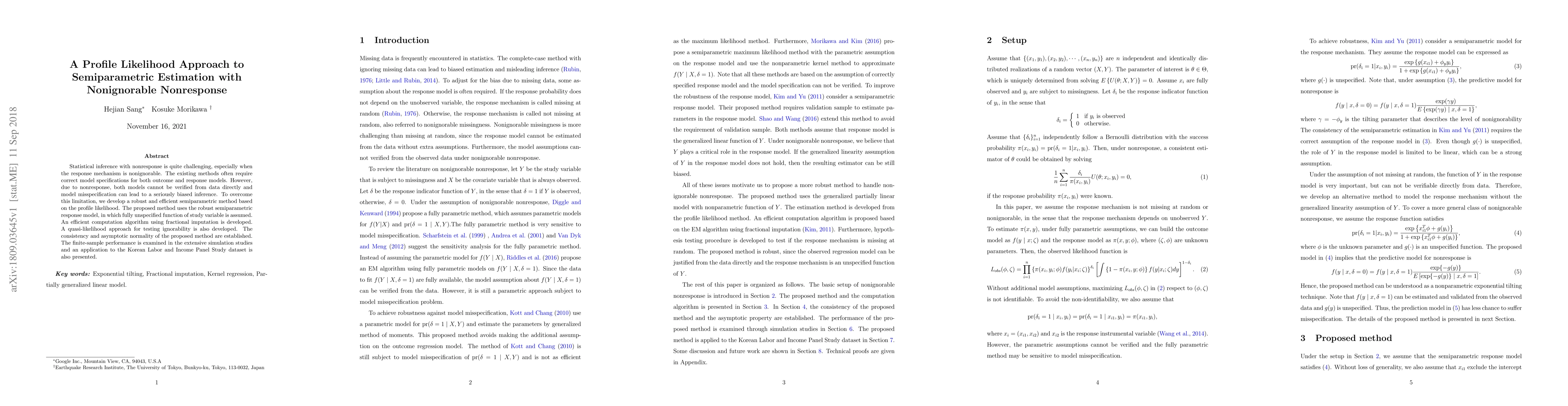 This paper proposes a robust semiparametric estimation method based on profile likelihood for statistical inference in the presence of nonignorable nonresponse. The method uses a fully unspecified response model and employs fractional imputation for efficient computation, while also developing a quasi-likelihood approach to test for response mechanism ignorability. Simulation studies and an application to a real dataset demonstrate its effectiveness.