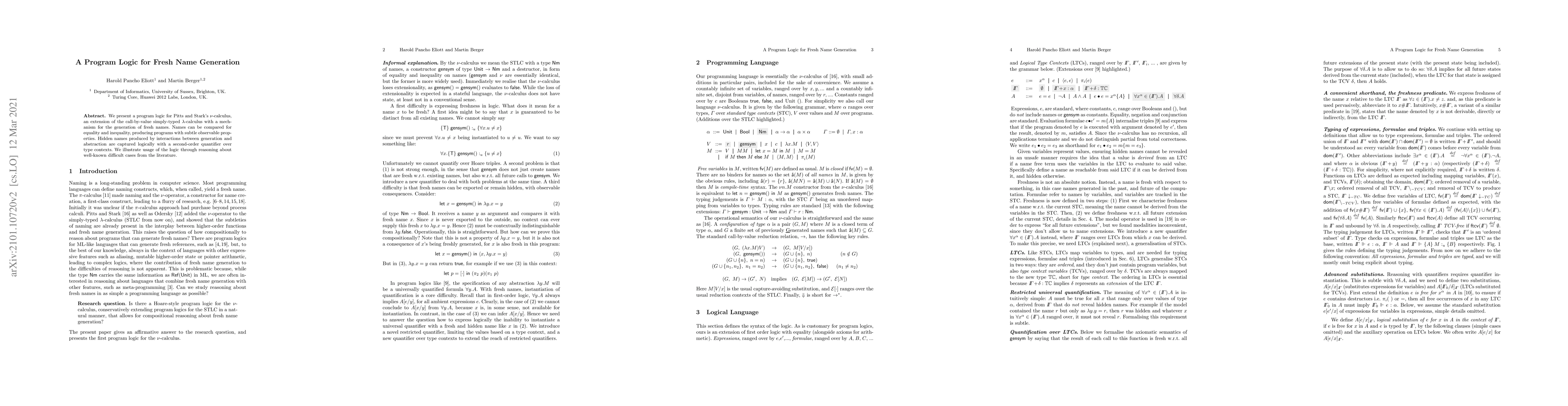 Researchers developed a logic framework for generating fresh names in programming languages, enabling comparison of subtle observable properties, and tackling well-known difficult cases from the literature.