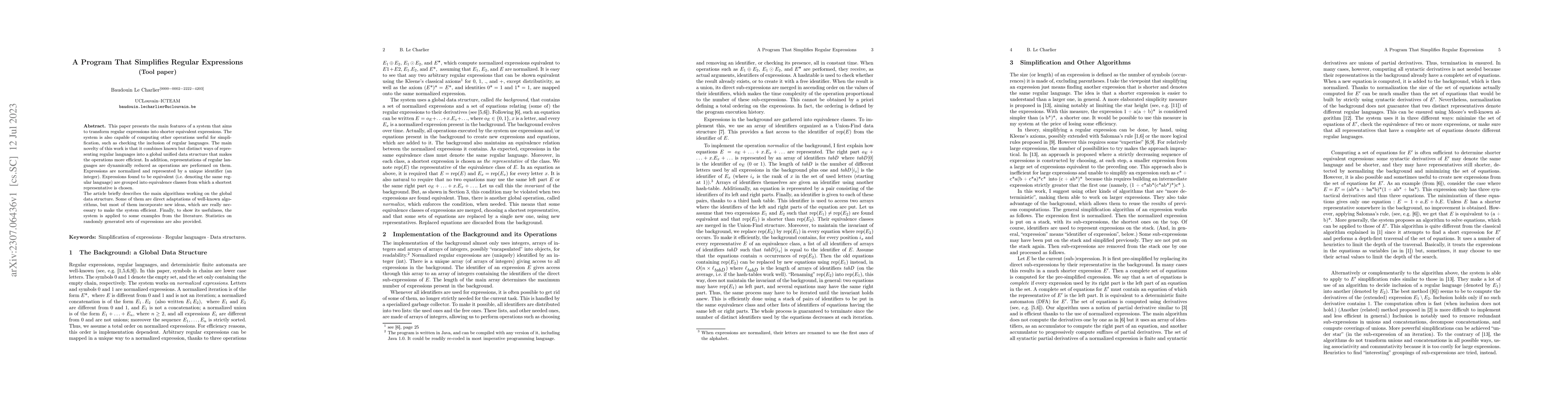 A novel algorithm for regular expression simplification is presented, combining traditional parsing methods with machine learning techniques to improve speed and accuracy.
