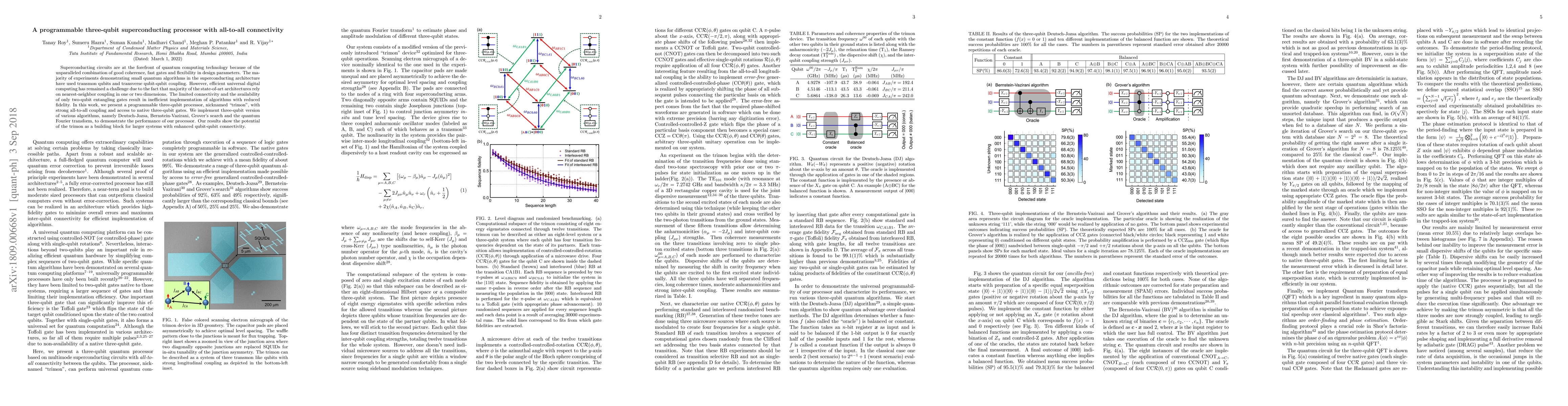 This paper introduces a programmable three-qubit superconducting processor named "trimon" with strong all-to-all connectivity and native three-qubit gates, addressing the limitations of previous architectures reliant on nearest-neighbor coupling. The trimon successfully implements several quantum algorithms, demonstrating enhanced fidelity and potential for scalable quantum computing.