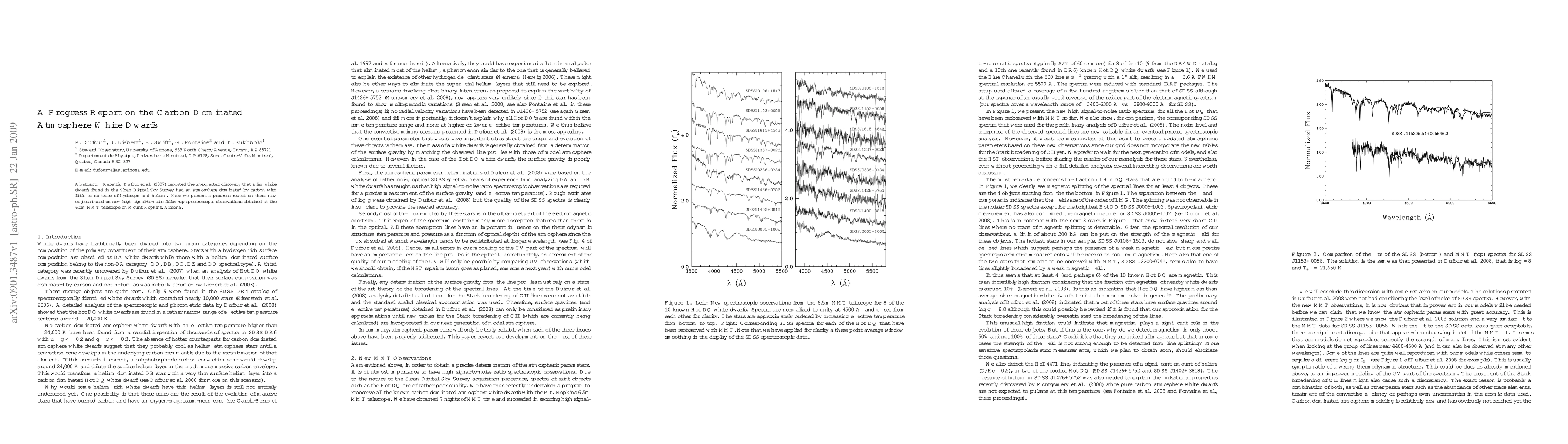 Recently, Dufour et al. (2007) reported the unexpected discovery that a few white dwarfs found in the Sloan Digital Sky Survey had an atmosphere dominated by carbon with little or no trace of hydrogen and helium. Here we present a progress report on these new objects based on new high signal-to-noise follow-up spectroscopic observations obtained at the 6.5m MMT telescope on Mount Hopkins, Arizona.