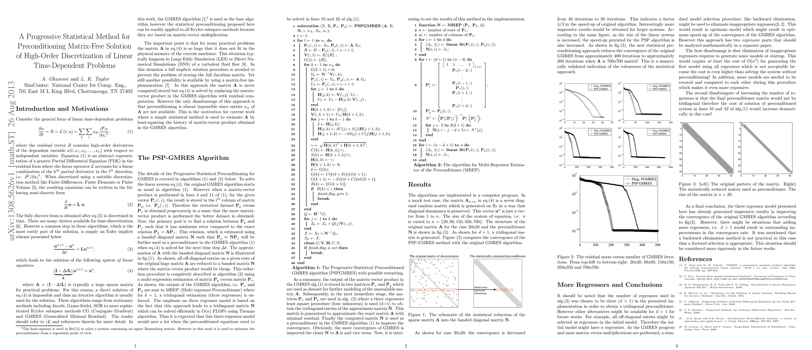 Researchers propose a statistically iterative method to create a preconditioner matrix from matrix-vector products in Arnoldi loop algorithms, improving the efficiency of high-order discretization of linear time-dependent problems.