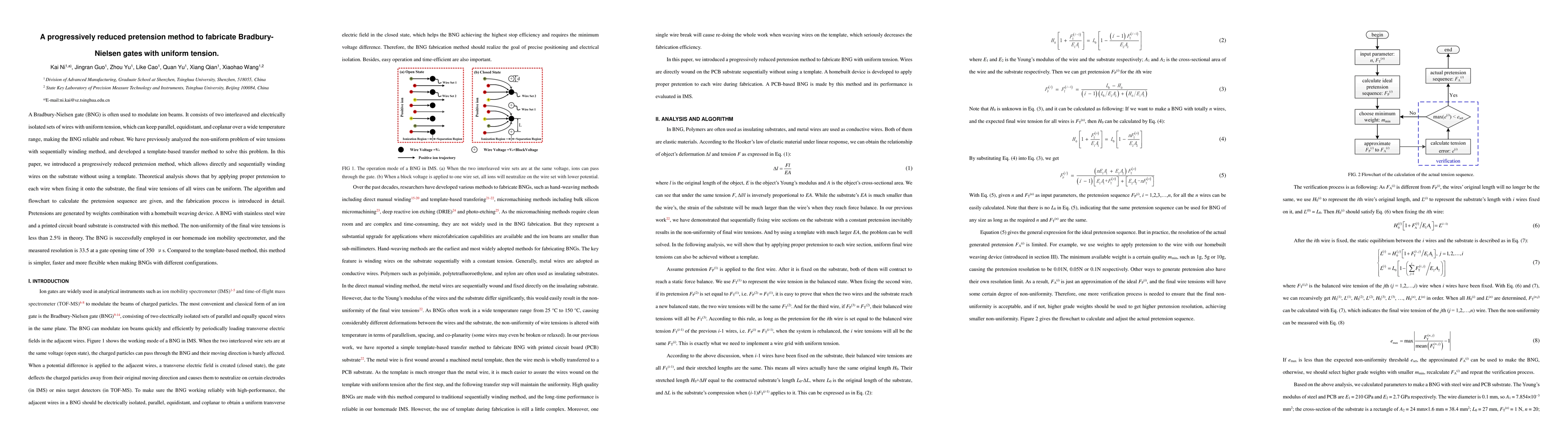 Researchers developed a new method to create uniform Bradbury-Nielsen gates with reduced pretension, simplifying their fabrication and improving flexibility for different configurations.